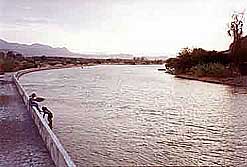 The end of the Rio Nazas and the beginning of the irrigation channels. |